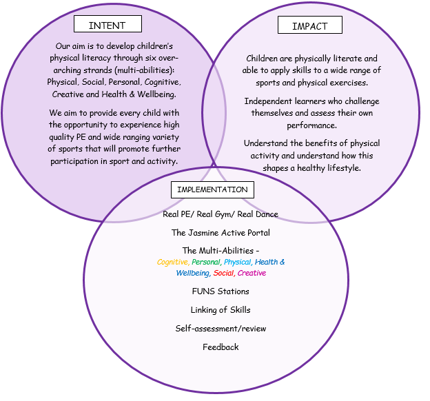 The Multi-abilities: The six Multi-Abilities (Cognitive, Personal, Physical, Health & Wellbeing, Social, Creative) are designed to develop the whole child, focusing on every element and benefit of physical activity and promote success for every child, regardless of existing abilities.