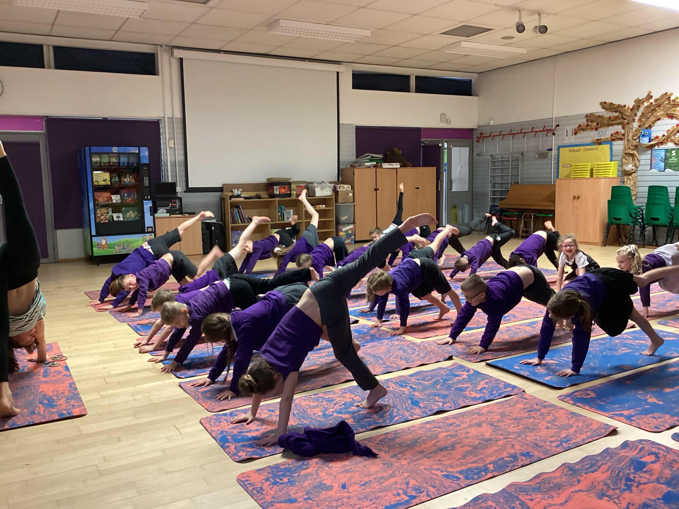 In addition to our PE lessons, the children also take part in weekly yoga lessons. Each year group, take it in turn on a termly rota to take part in the yoga sessions. The children love to learn all the new yoga poses.