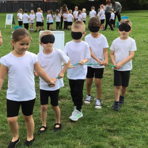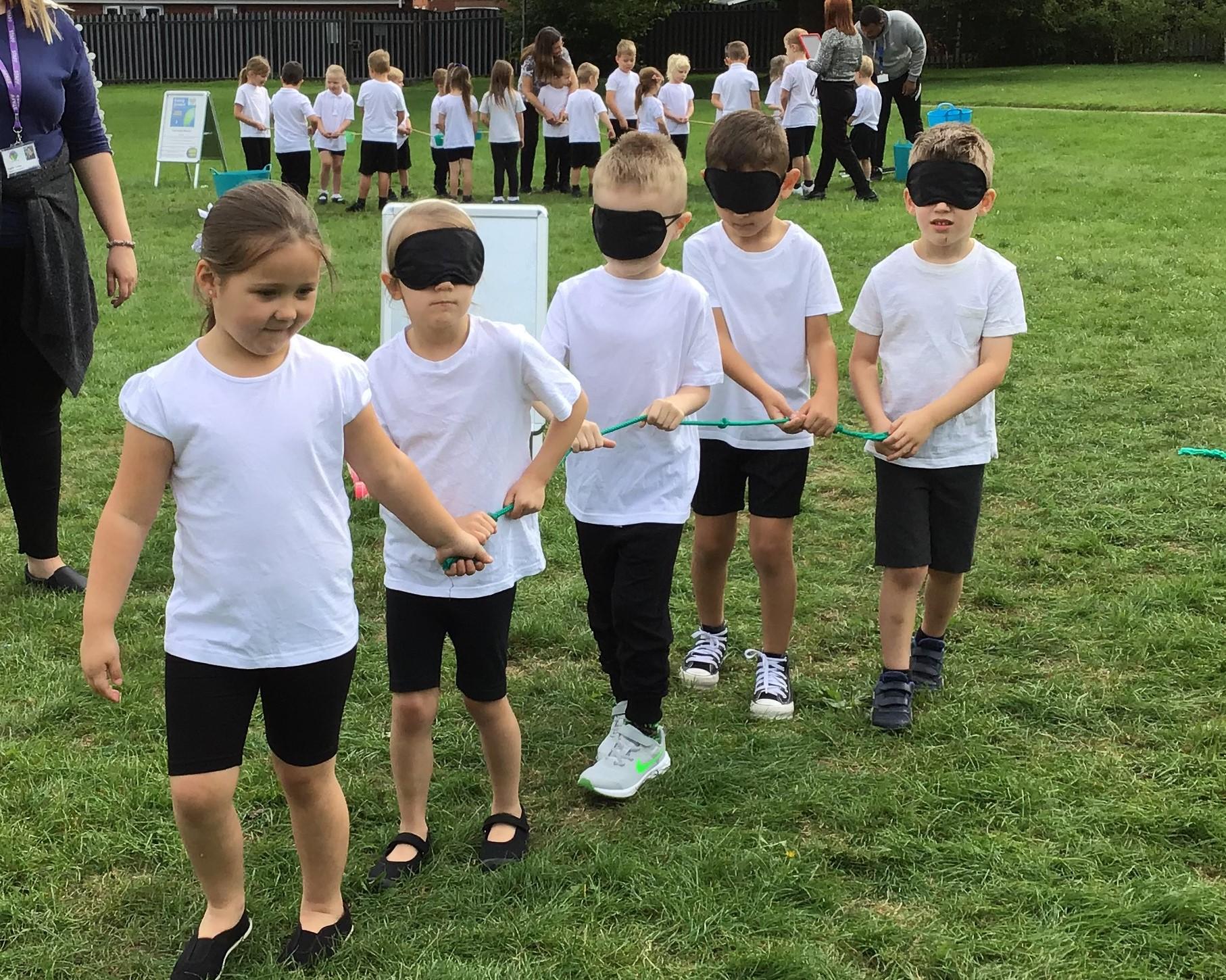 The aim of the different challenges are for the children to work as a team to complete them. They have to complete activities such as following a trail blindfolded, cross a river, complete a agility course to collect different food and to fill containers with water. All the children worked well together and had great fun! Check out the photos below.