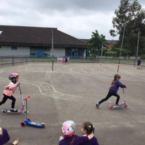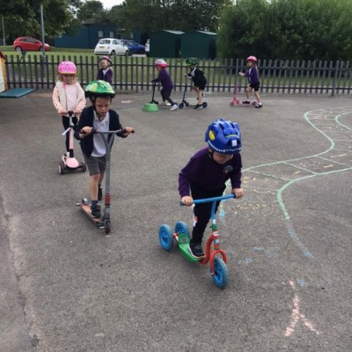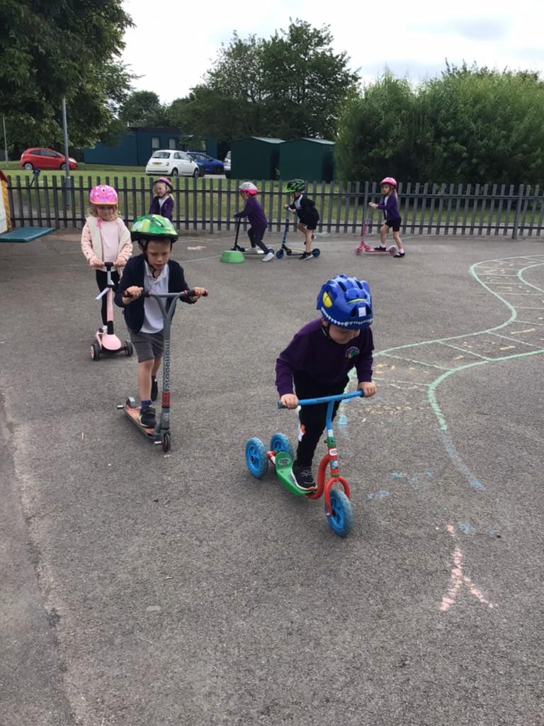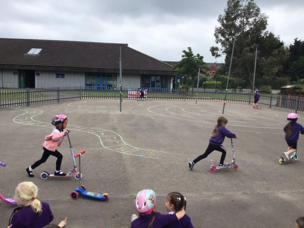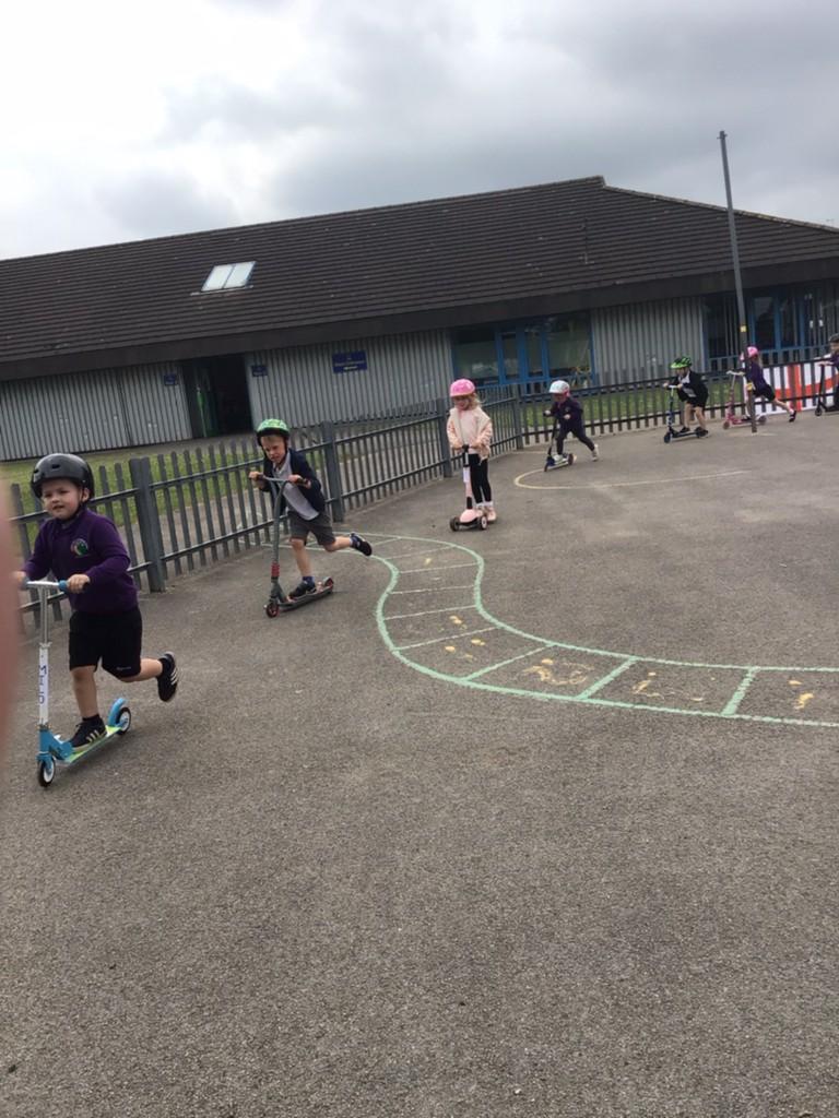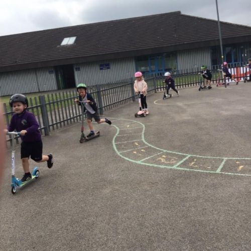 To help some raise money, the whole school took part in a sponsored ‘scootathon’. The children brought in their scooters to school and they had to see how many times they could go round the playground. Children from Nursery through to Year 2 took part. They had lots of fun and raised lots of money for our school and Sheffield Children's Hospital.